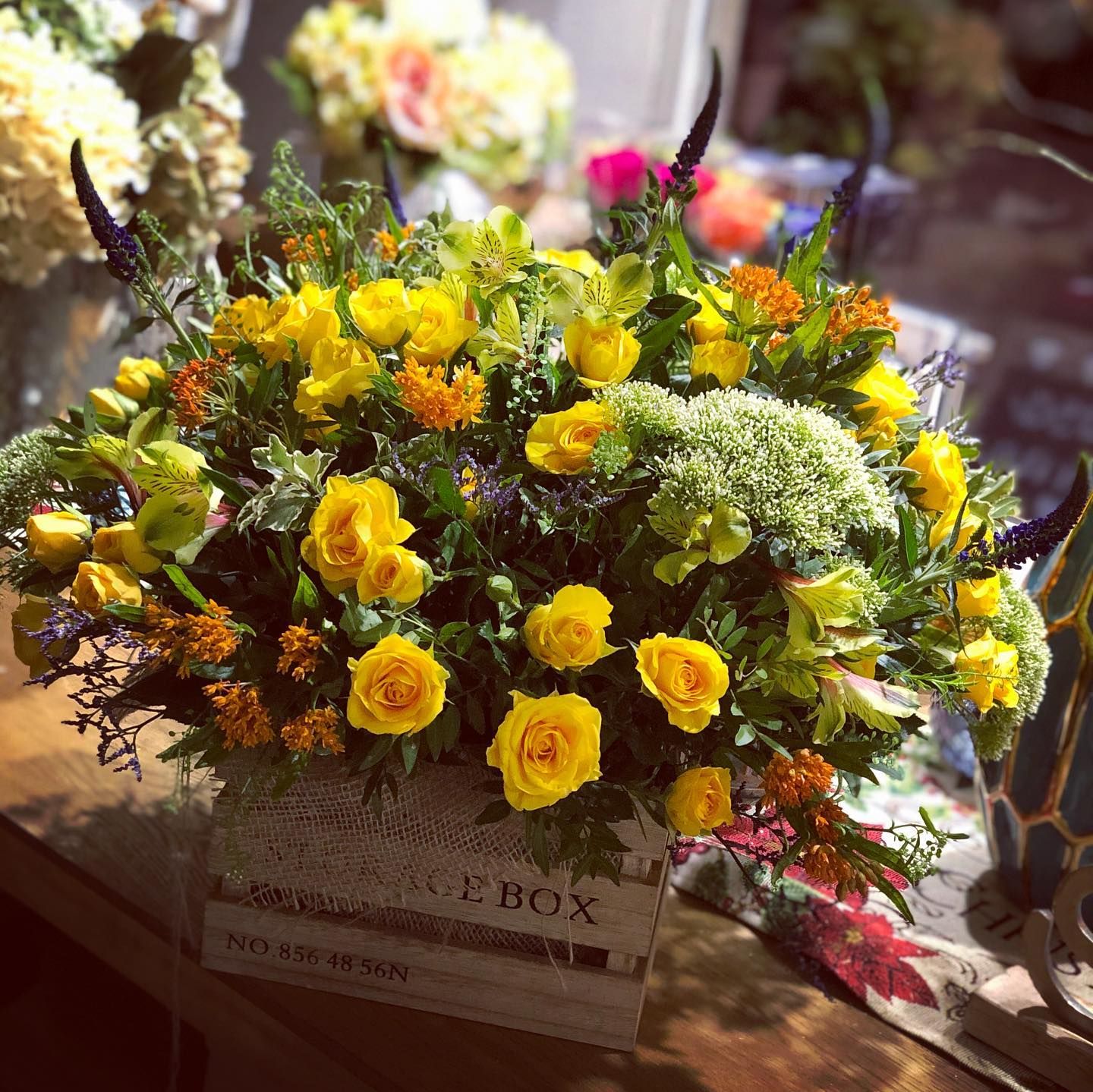 Caja con flores en amarillo