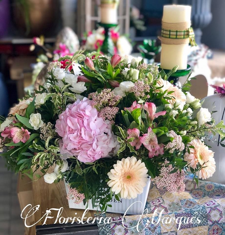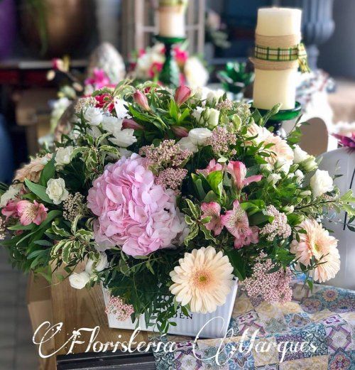 Centro base metal tonos rosa